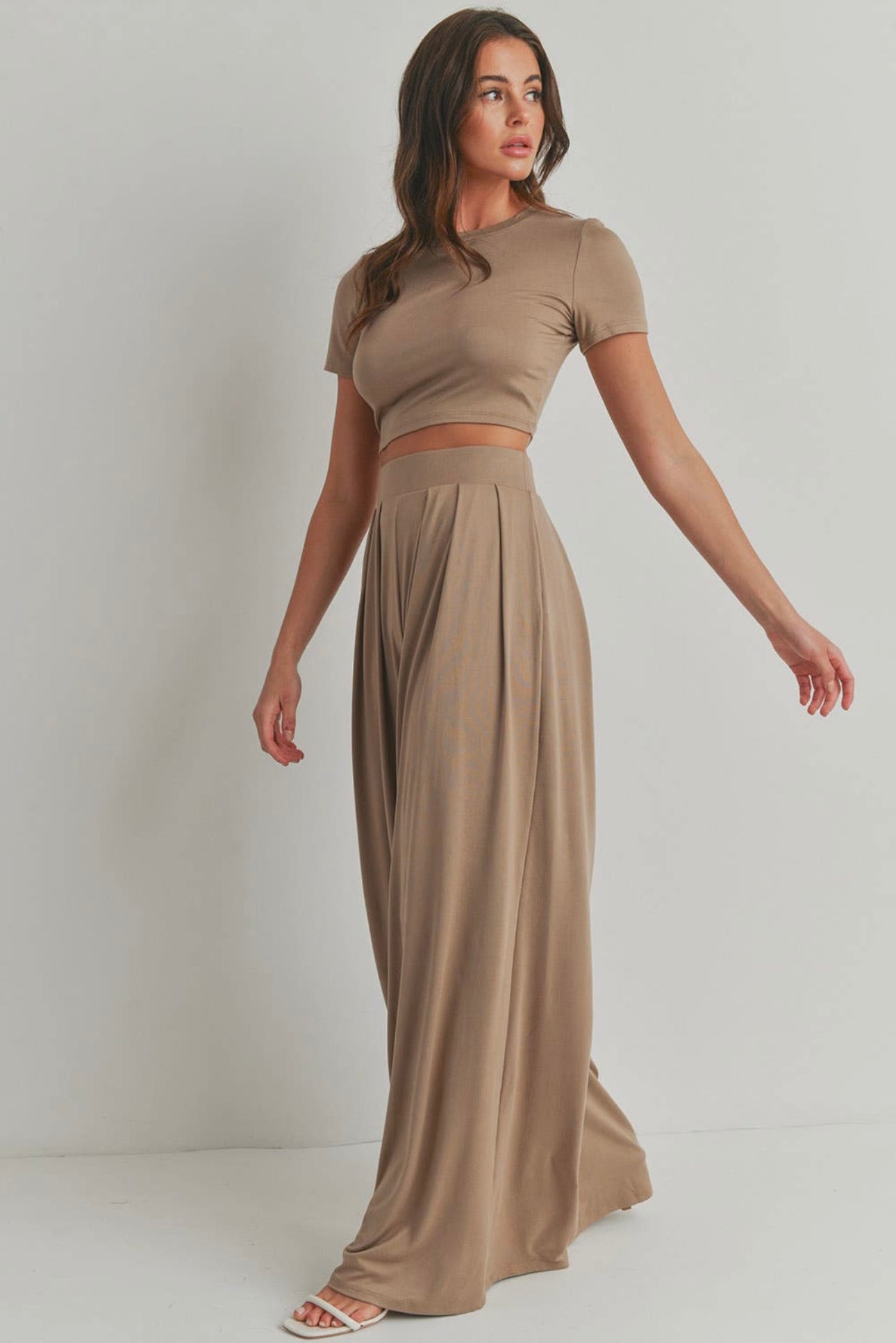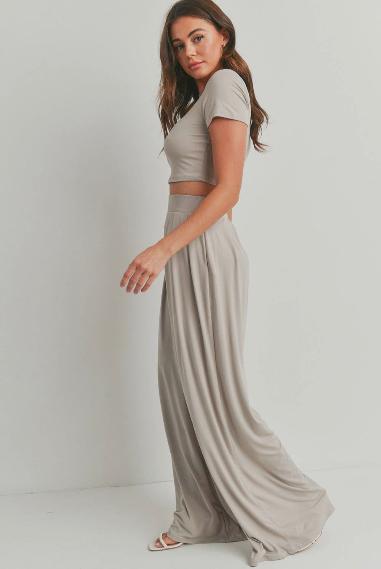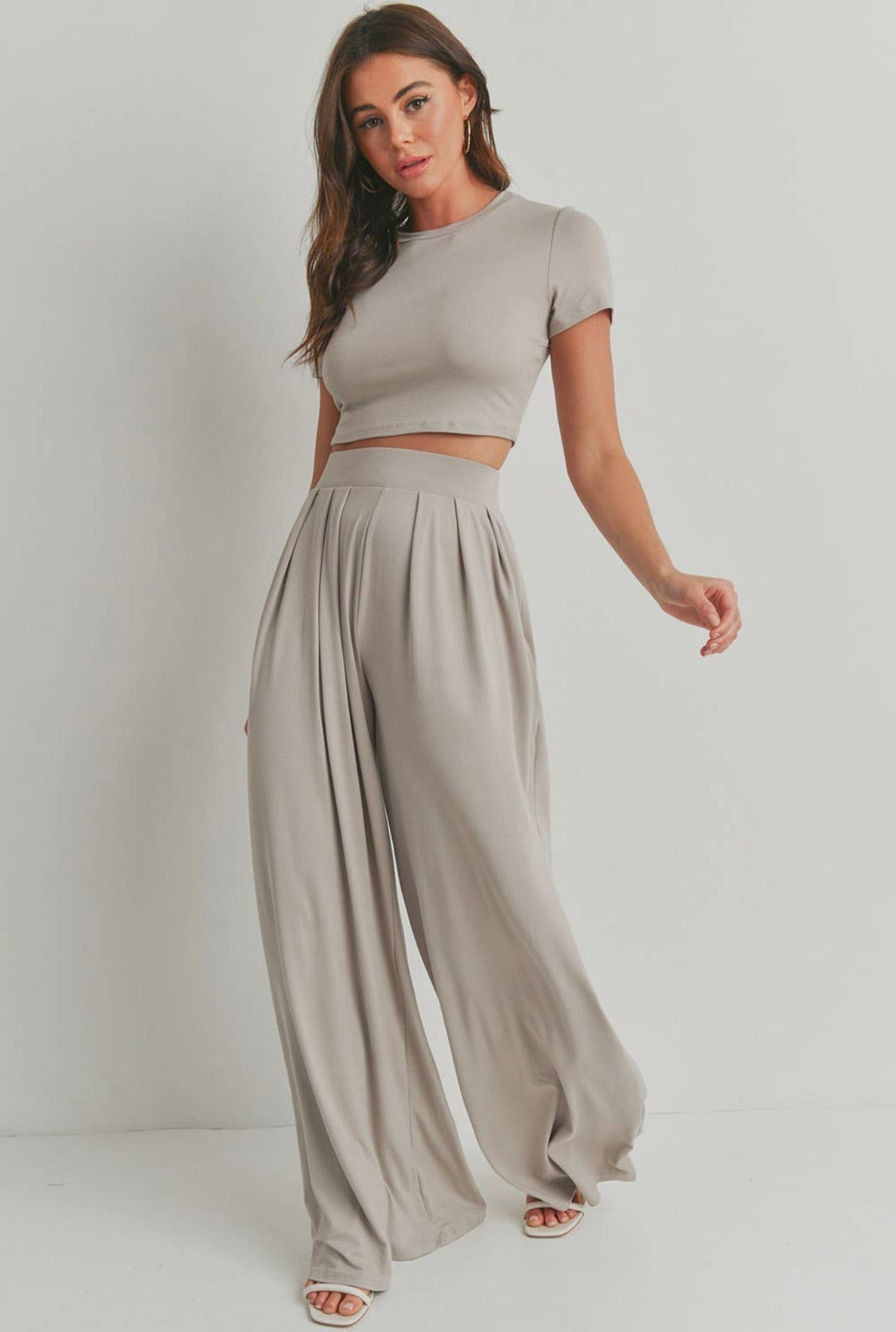 CROP TOP AND WIDE LEG PALAZZO PANTS SET